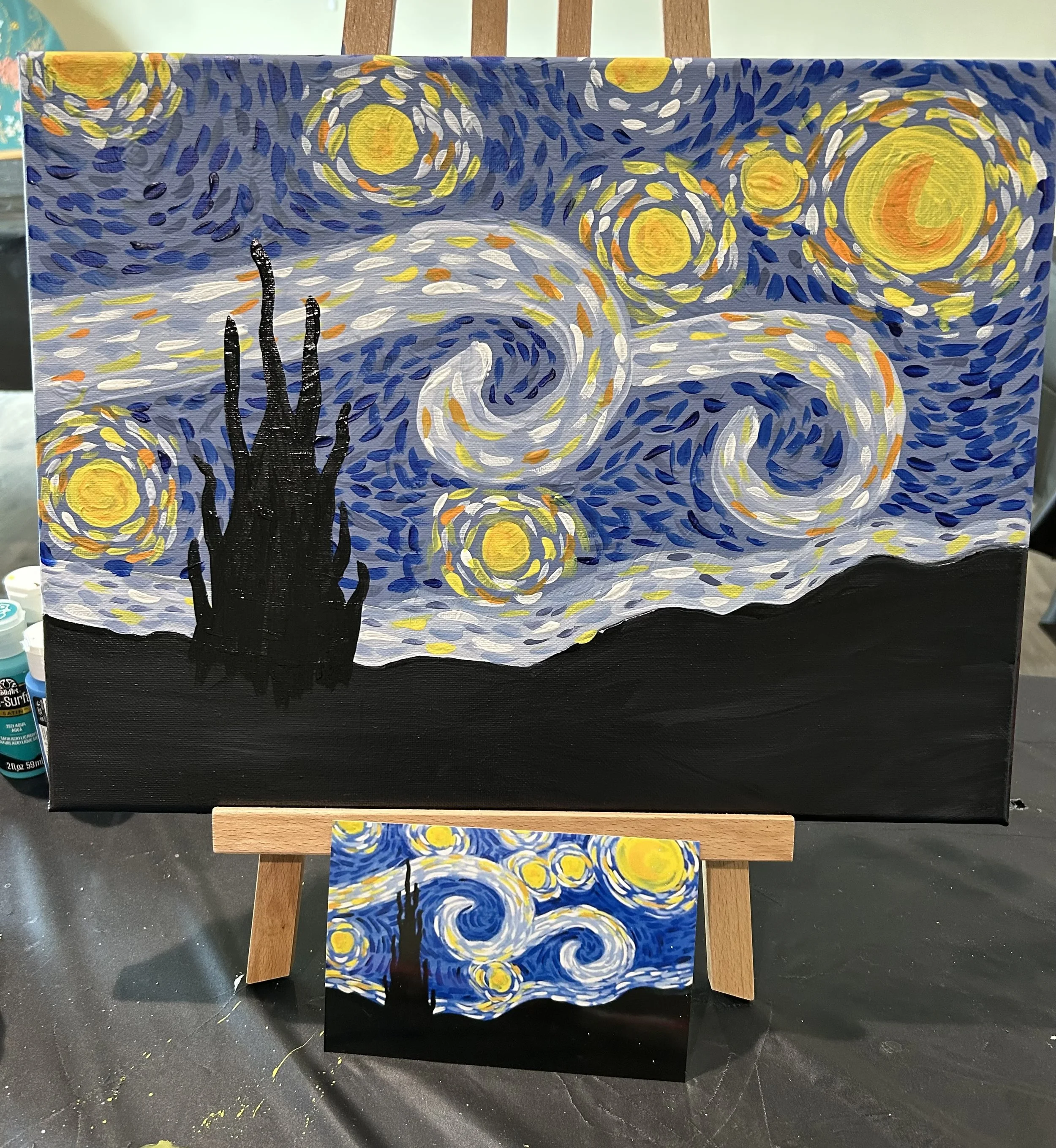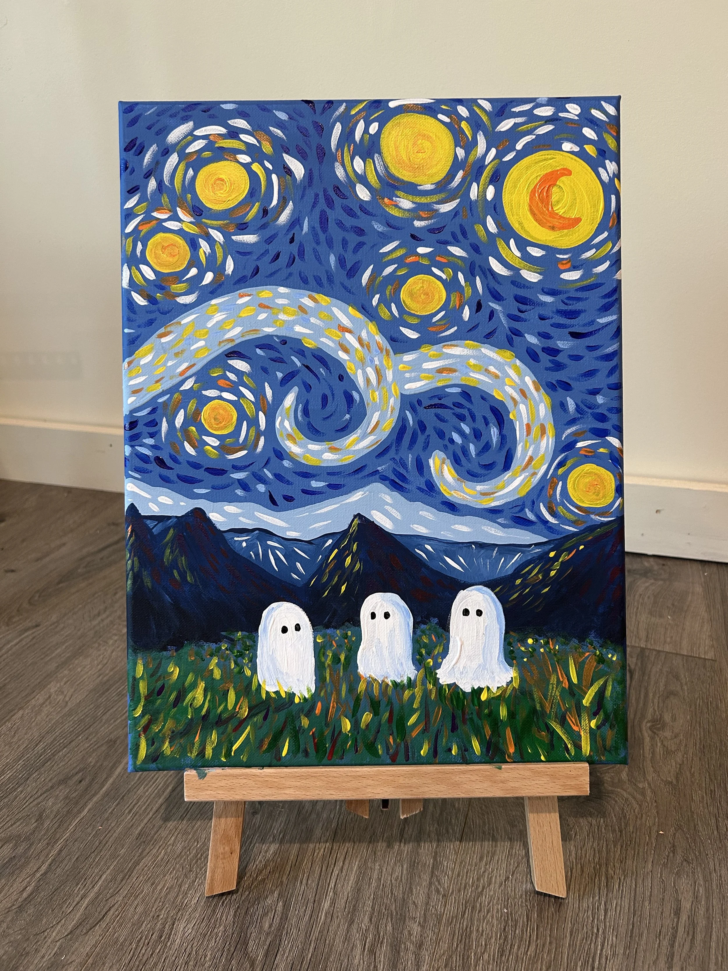 Paint Class Registration Unleash your inner artist Purchase Tickets Cat in a Witch's Hat from $35.00 Select Ticket Options With Wine Without Wine Add To Cart Added! Paint n Sip: 3 Ghosts on a Starry Night from $35.00 Select Ticket options With Wine Without Wine Add To Cart Added! Paint n Sip: Dia De Los Muertos from $35.00 Select Day of the dead With Margaritas Without Margaritas Add To Cart Added! Paint N Sip: Starry Night from $35.00 Select Starry Night With Wine Without Wine Add To Cart Added!